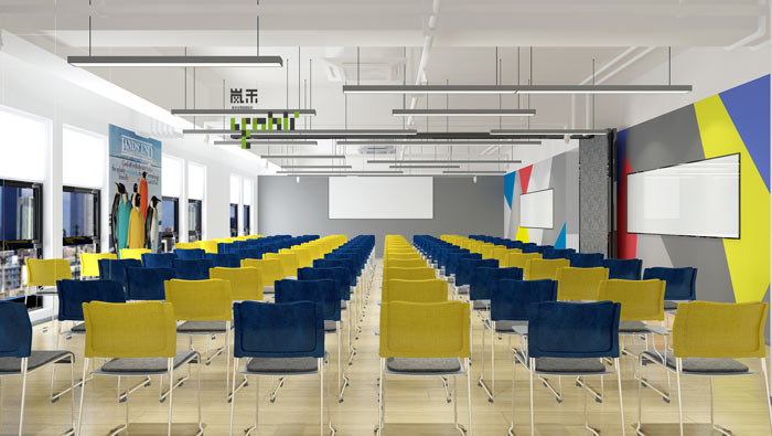 辦公室20樓培訓室設計:這是一個熱情的空間,設計師利用設計讓空間各種元素激蕩起來,目的就是希望讓此熱情可以經久不衰,讓企業不斷培養專業的人才,讓員工在這里不斷成長。