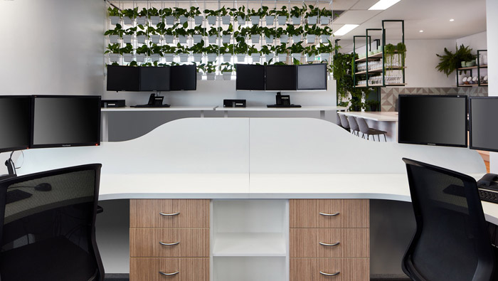 本次為網(wǎng)絡科技公司裝修設計效果圖,辦公室設計面積1300平方,設計師在辦公室設計中,從接待處開始,在整個空間使用木材飾面,深色和綠色調,為辦公室營造出溫馨、親切的氛圍。