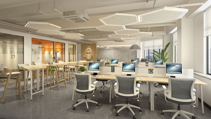 本次為杭州聯合辦公裝修設計效果圖,辦公室設計面積1285平方,設計師以開放、便捷、實用為設計理念,目的就是希望打造一個適合企業發展的辦公空間。