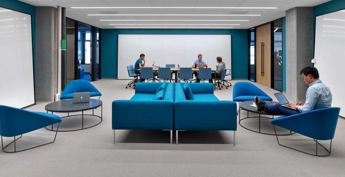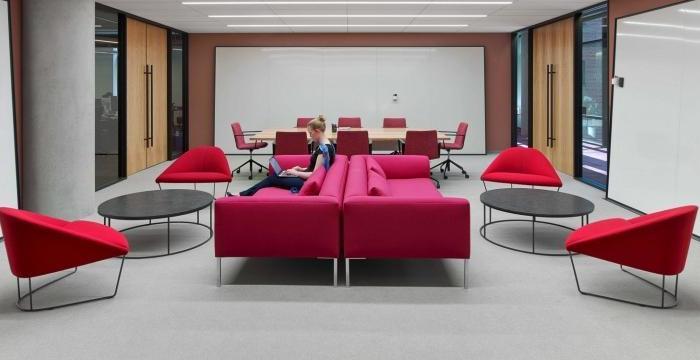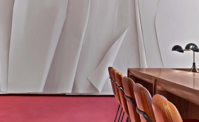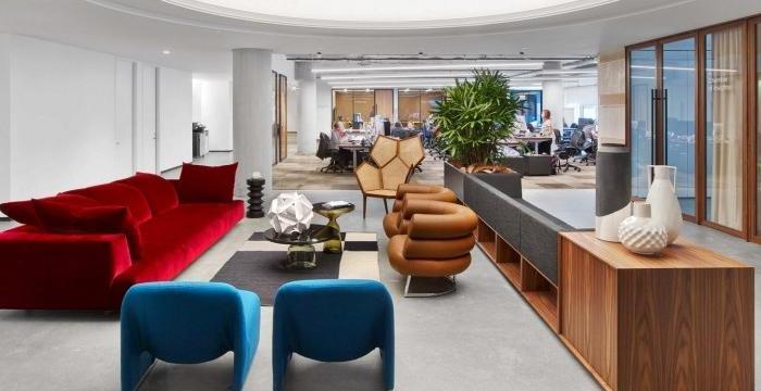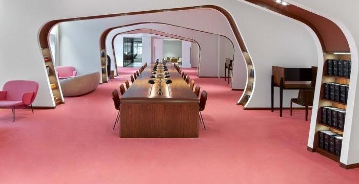 這次來帶一家數據存儲公司辦公室裝修設計案例,空間面積1020平方米。靈感來自一個模糊的,70年代的意大利劇院,它到處都是圓角和毛絨地毯,是退卻閱讀或發送電子郵件的理想選擇。
