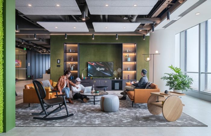 這是一個(gè)外企科技公司的辦公室空間,面積為3600平,該辦公室的設(shè)計(jì)注重將本地特色與全球標(biāo)準(zhǔn)的辦公環(huán)境相結(jié)合,旨在為創(chuàng)作者、合作伙伴和客戶提供一個(gè)共同創(chuàng)新和交流的平臺(tái)。設(shè)計(jì)師運(yùn)用創(chuàng)意和真實(shí)的材料,致敬 Unity 的價(jià)值觀,即賦予所有創(chuàng)作者力量,實(shí)現(xiàn)他們的創(chuàng)意。