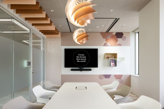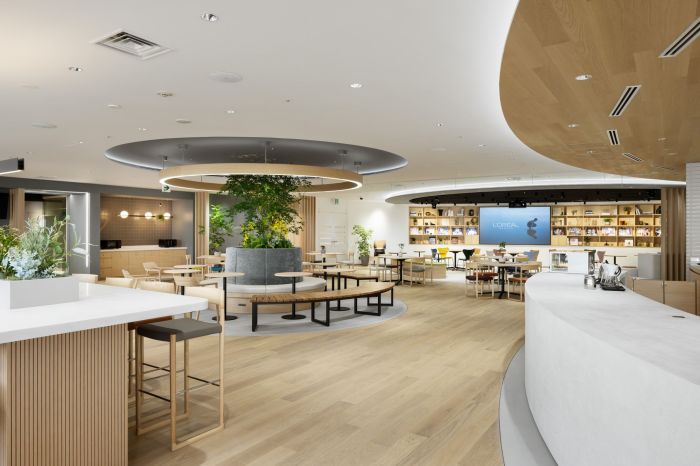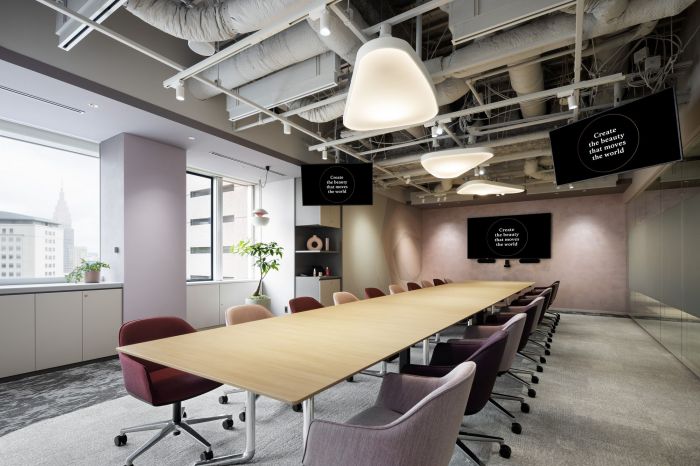 這是一個化妝品品牌的辦公室,有6300方的面積。辦公室采用了傳統(tǒng)美學(xué)的四季、紋理、家具和裝飾。辦公室采用了活動式工作模式,以支持新的工作方式,重視員工的獨(dú)立性和多樣性,并將混合辦公作為主要前提。