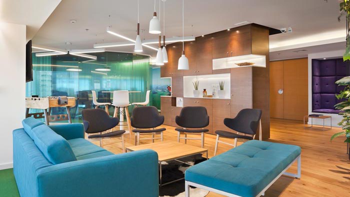 辦公區(qū)域的設(shè)計(jì):設(shè)計(jì)師在設(shè)計(jì)的時(shí)候,采用不規(guī)則的辦公布局,在設(shè)計(jì)師看來這樣的設(shè)計(jì)可以各取所長、各補(bǔ)所短,在開放空間布局的同時(shí),為每一個(gè)員工打造一個(gè)屬于自己的私人空間,不規(guī)則所打造的辦公空間,讓空間充滿了活力。