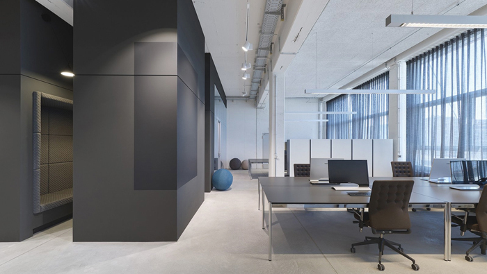 辦公區(qū)域細(xì)節(jié)的設(shè)計(jì):此處可以看出設(shè)計(jì)師在辦公桌的選擇上,可謂是煞費(fèi)苦心,設(shè)計(jì)師的目的就是希望簡單可以進(jìn)行到底,設(shè)計(jì)師希望為員工打造一個(gè)舒適、輕松的辦公場所,辦公桌在員工平時(shí)的辦公中意義十分重大,故此設(shè)計(jì)師希望員工可以自己去安排辦公桌上的裝飾,這可以最大程度上照顧到每一個(gè)人。