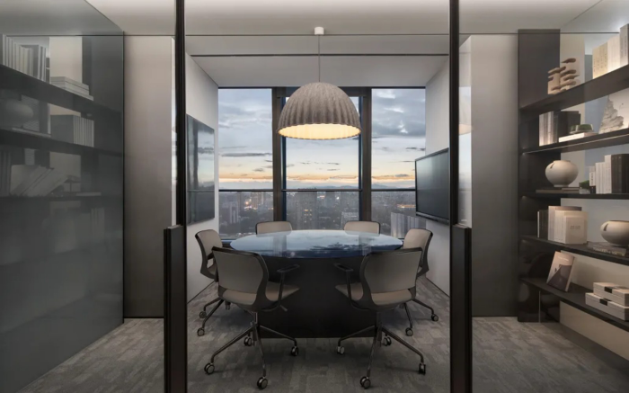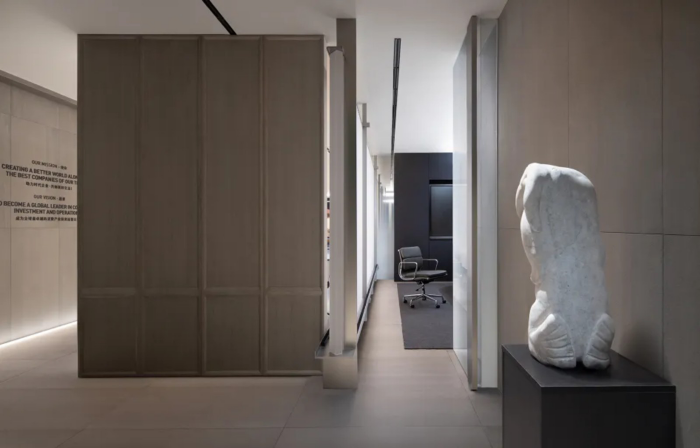 這間辦公室擁有500方的面積,業(yè)主是一家享譽(yù)業(yè)界的金融公司。設(shè)計(jì)師使用新中式的風(fēng)格,展現(xiàn)了東方的視野,設(shè)計(jì)始終保有空間的溫和與優(yōu)雅。雕塑化的造型、理性的結(jié)構(gòu)美、簡(jiǎn) 雅的線條感,極簡(jiǎn)的空靈和厚重的現(xiàn)實(shí)得以結(jié)合。