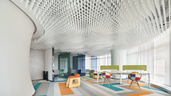 設計師在空間中還設計了很多供大家快速溝通的環(huán)境和位置,讓溝通便捷輕松。這樣的設計旨在讓員工在無壓力的狀態(tài)下,更好地釋放創(chuàng)意靈魂,提高創(chuàng)造力。