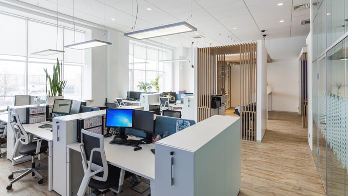 本次為照明公司辦公室裝修設計項目,設計面積在130平方左右,由于辦公室的面積有限,故此建立一個有效的、規劃的功能空間就顯得尤為重要,設計師的想法就是將辦公室劃分成不同的分區,但為了保證空間與空間之間的合理運用,故此在分區與分區之間設計師都不會將其完全封閉,而是采用相互協作進行化解。