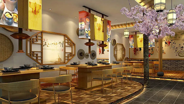 韓式特色餐廳包廂設計:在嘈雜的社會中,偶爾體驗一下不同的異域風情,對于我們來說也是一種放松,會讓我們緊繃的神經放松一下,山水結構的就餐環境,讓生活慢下來。