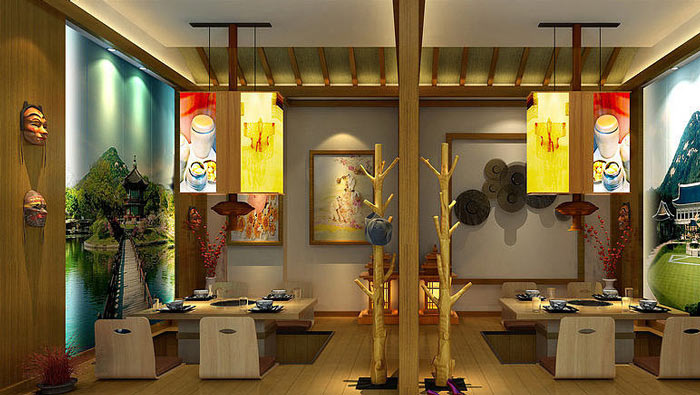 韓式特色餐廳裝飾墻設計:空間中沒有嘈雜,有的只是靜謐,高雅的品位、溫文而雅的就餐環境,使人獲得精神上的放松,成為緊張工作之余的溫馨港灣,這是我們所追求的目標。