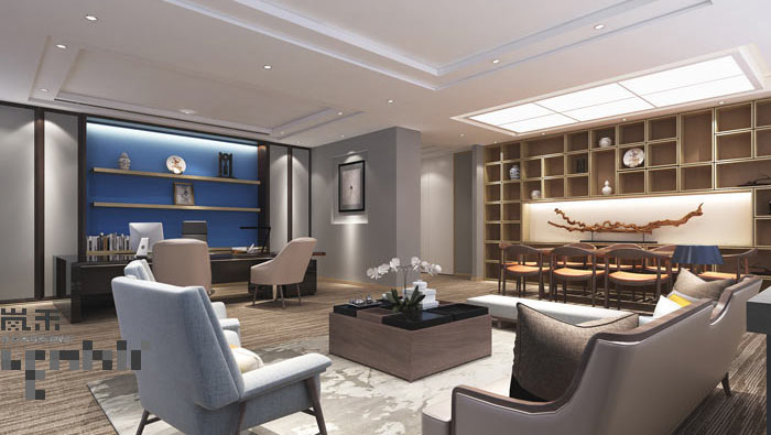 總經(jīng)理辦公室的設(shè)計(jì):設(shè)計(jì)師在設(shè)計(jì)的時(shí)候,將辦公區(qū)域、休息區(qū)域、接待區(qū)域、交流區(qū)域、展示區(qū)域相互融合在一起,對(duì)于設(shè)計(jì)師來(lái)說(shuō),多重融合的空間在于極簡(jiǎn)、在于融合,故此設(shè)計(jì)師經(jīng)過(guò)無(wú)數(shù)次的融合、打亂、融合、打亂的方式不斷進(jìn)行重組,在不斷重組的過(guò)程中,完成了多功能空間的相互融合。