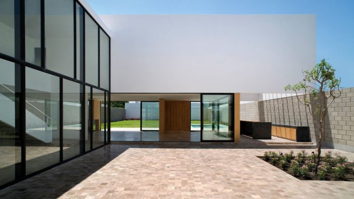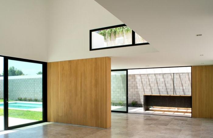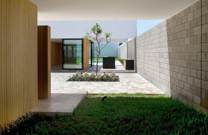 極簡別墅帶有大自然氣息,U字型的別墅設計棱角分明。在住宅中的庭院或者其他的空曠空間往往被定義為是一個等價空間,沒有一個特定的作用。不過,這樣的空間在一個景觀設計中卻是必不可少的,界限模糊的原始空間往往會被設計師們改造成不同的風格種類。
