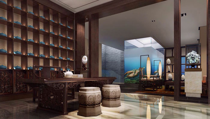 現代、中式混搭私人會所接待區域裝修設計案例效果圖