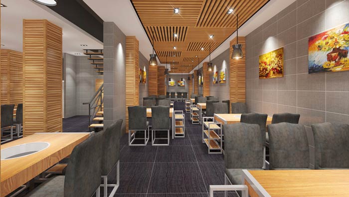 魚火鍋店一樓餐區(qū)設計:四人桌、六人桌是一樓餐區(qū)的主要組成部分,這里的設計目標十分明確,就是為每一桌的客戶,在滿足需求的同時,為他們營造一個優(yōu)質(zhì)的就餐環(huán)境。