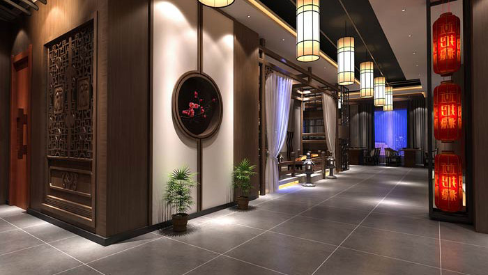 本次為新中式杭州火鍋店裝修設計效果圖,在本次火鍋店設計中,設計師以新中式為火鍋店設計關鍵詞,目的就是希望打造一個簡單、舒適的火鍋店就餐環(huán)境。