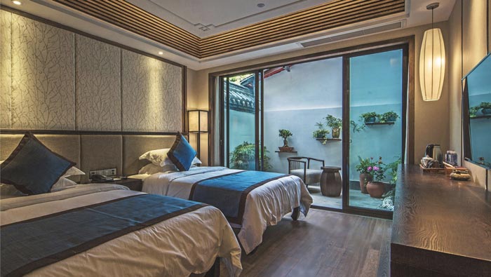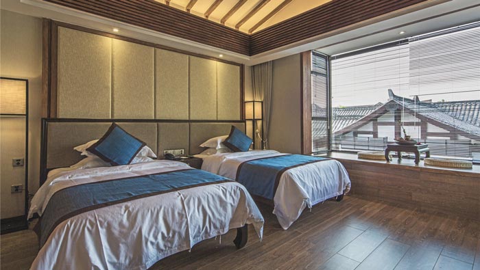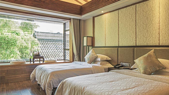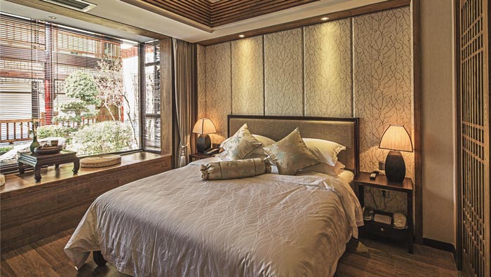 禪文化精品酒店二樓雙人客房裝修設計案例效果圖