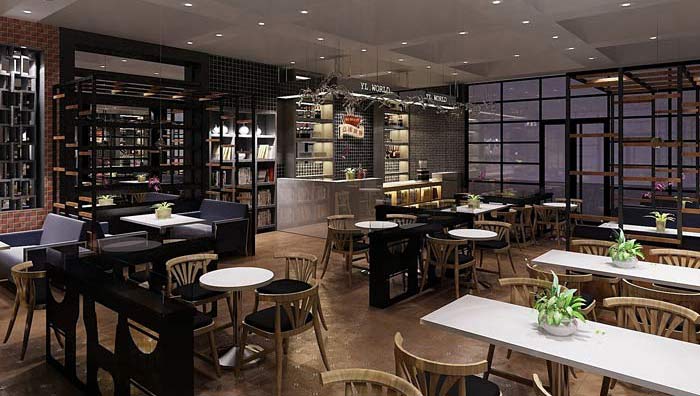 在軟裝設計的同時,設計師根據咖啡館的大小來決定咖啡桌,已達到與空間大小的配合,避免出現小空間配大咖啡桌,或者大空間配小咖啡桌。