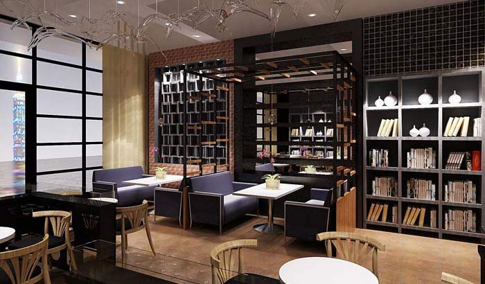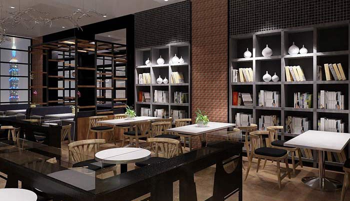 書苑咖啡館廳大廳區域裝修設計案例效果圖