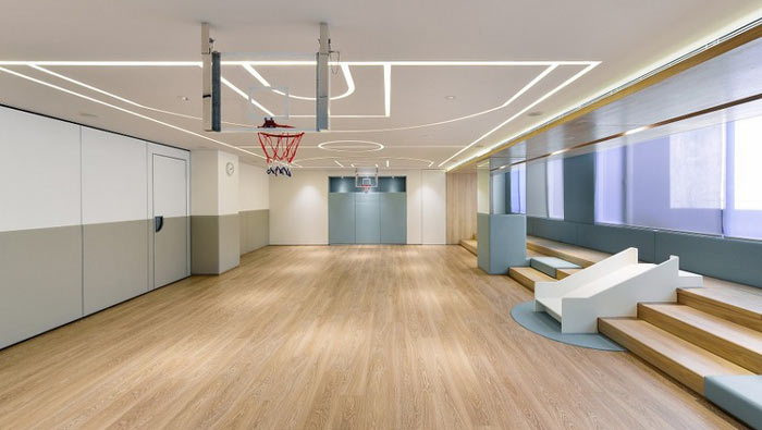 兒童教育培訓(xùn)機(jī)構(gòu)籃球場設(shè)計:孩子太小沒法學(xué)習(xí)籃球,沒關(guān)系在這里教育的不是成功投籃,而是培養(yǎng)孩子的興趣,在與隊(duì)員相互配合的同時,培養(yǎng)孩子們的團(tuán)隊(duì)意識。