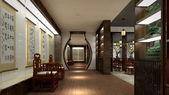 本次為書法教育培訓機構裝修設計案例,在本次設計中,設計風格毫無疑問就是傳統的中式風格,因為書法藝術的背景是中國的傳統文化,且書法植根于中國傳統文化土壤,傳統文化是書法賴以生存、發展的背景,故此為了保證書法的自然與純真,中式設計自然當之無愧、無可替代。