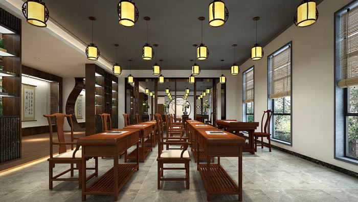 書法教育培訓機構教室設計:在這里我們仿佛回到了古代,先生坐于堂上,學生坐于堂下,先生盡心教,學生盡心學,讓我們看到了師生之情,讓我們恢復傳統美德——尊師重道。