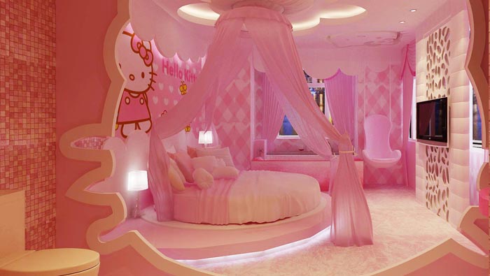 主題情侶酒店Hello Kitty客房裝修設計案例效果圖