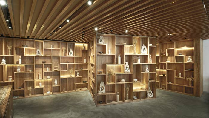 日式餐廳展示區設計:展示區擺放著各式各樣的農作物,之所以這樣設計,是希望讓城市的人們,可以看到農作物的真實面貌,滿足一下大家的好奇心。